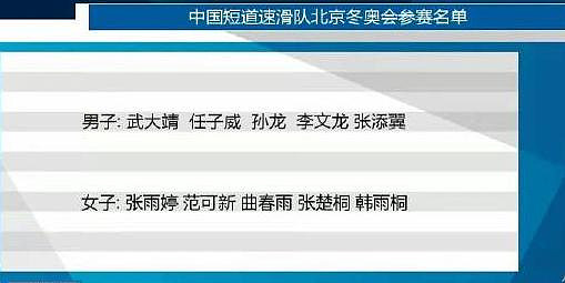 中国短道速滑队北京冬奥会参赛名单
