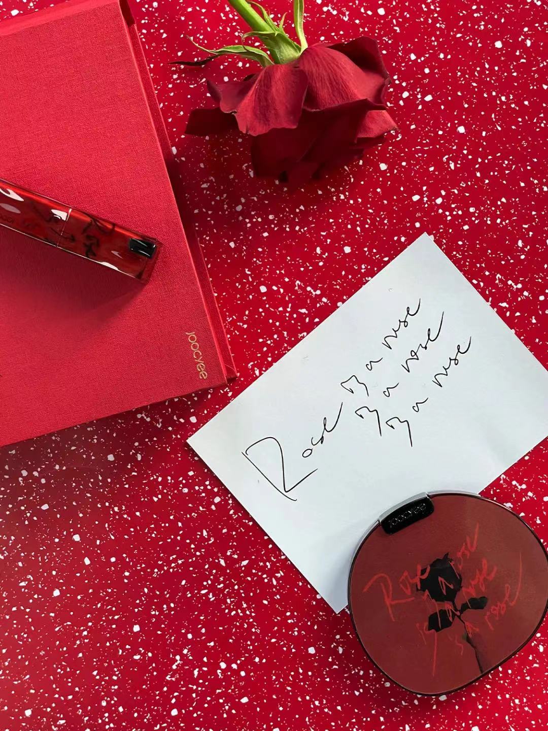 橘朵的姐妹品牌酵色则是专门为情人节推出了一个新的产品系列。以“玫瑰情书”为主题,酵色新推出了三支口红和一个眼影盘。