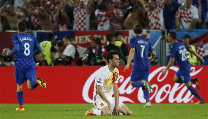 然而正当一切朝着卫冕冠军的计划前行时,顽强的克罗地亚人在缺少核心莫德里奇的情况下在最后时刻神奇般地逆转取胜,这不仅让西班牙欧洲杯734分钟不失球的纪录作古,也让西班牙自2004年欧洲杯输给葡萄牙以来,首次尝到了输球的滋味。