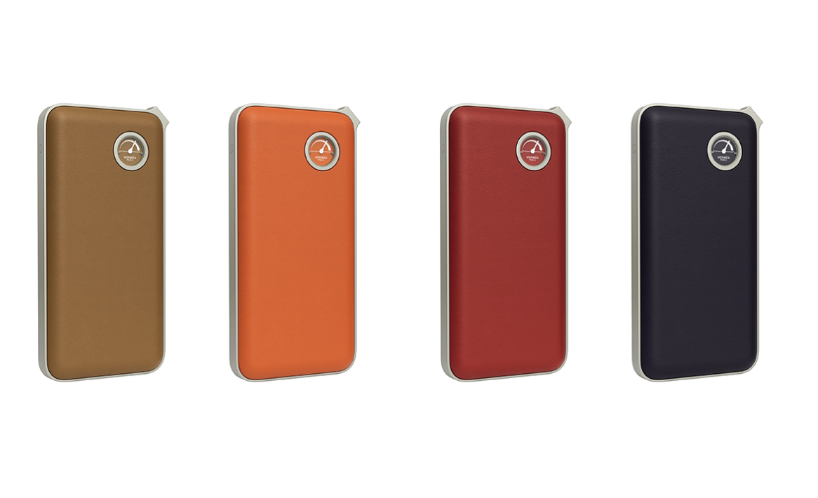 该产品外观以缤纷的橘、黄、红,还有黑、褐色的Swift小牛皮包裹。特别的是,无线电源其中一面的右上角有一个小型复古指针表盘,用以显示电量。而充电孔被隐藏在一角,确保设计风格与实用性完美融合。
