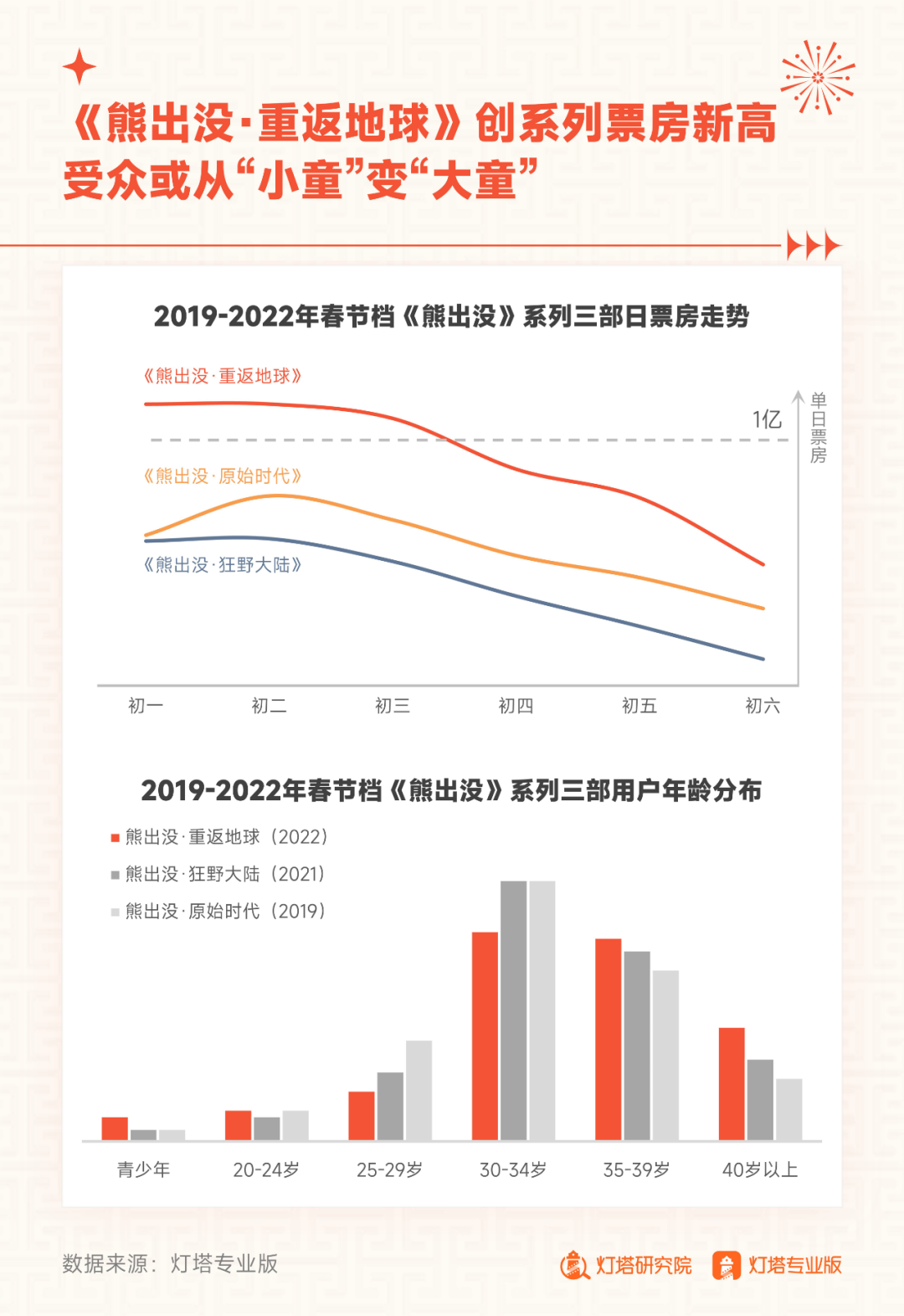一是电影《熊出没·重返地球》连续3日破亿,最终票房可能会突破8亿,创系列电影历史新高,也打开了亲子电影市场的新可能。