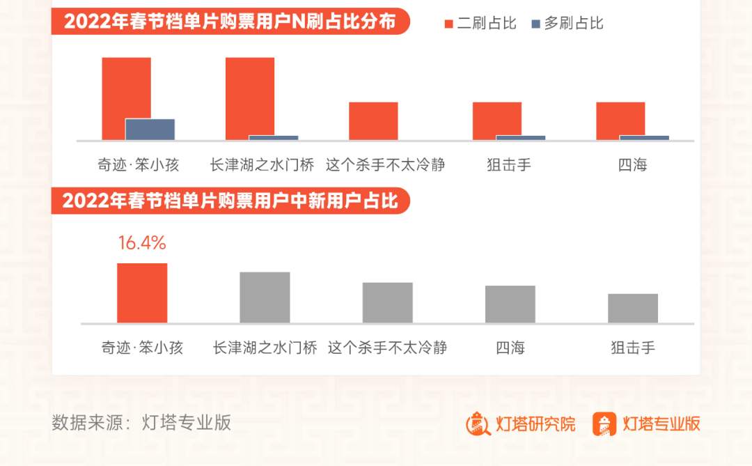 灯塔《报告》针对今年春节档做出了一些新的洞察,比如影片的口碑与票房走势高度一致,强化了口碑是电影票房关键变量的趋势;比如影片逆袭的核心要素口碑需要精细化拆解,今年春节档情绪价值所能提供的票房动力明显;再如,从内容出发,对于潜在的复购率、多张购票以及新用户的关注。