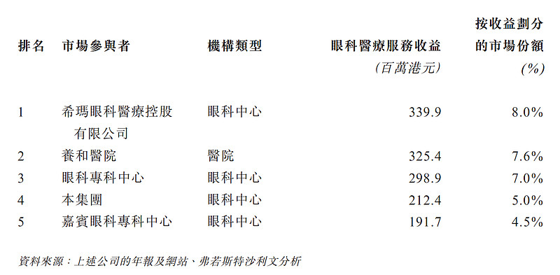 据招股书显示,香港的眼科行业分散,且由于所提供服务的差异有限,导致竞争剧烈。据弗若斯特沙利文的资料显示,估计私营眼科服务市场的市场规模将于2025年达59亿港元,2021年至2025年的复合年增长率为6.4%;同期,公营眼科服务市场的市场规模预计将达53亿港元,复合年增长率为4.9%。