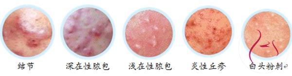 A.白头粉刺:轻微凸起,呈肤色。这个时候毛囊还未溃口,未发生炎症和感染。白头粉刺一部分会自动消退火氧化成为黑头粉刺,大部分则变为炎性丘疹和脓包。