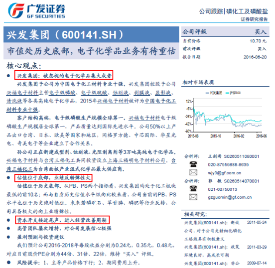 就广发证券着力看好兴福电子,该人士称,兴福电子的主营主品电子级磷酸,产品附加值较高。“目前来看,我们是国内第一个涉及的企业,之前的市场是空白的。所以是在探索的过程中,要慢慢走。高附加值产品,对客户要求也高,市场开拓难度也大。”