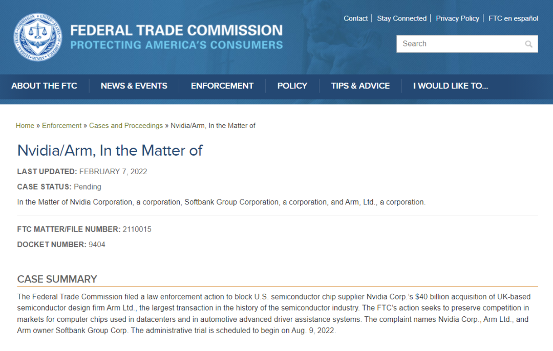 ▲美国FTC披露的起诉英伟达收购Arm过程