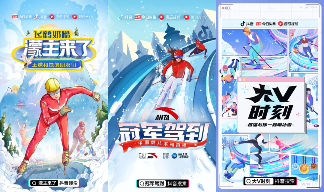 除了《濛主来了》,抖音还推出《冠军驾到》邀请冬奥冰雪健儿们赛后第一时间与你连线,《大V时刻》则由黄健翔、刘建宏等体育名嘴、达人与前方记者直播连线,在观赛同时与大家互动聊天,多档IP节目保证了抖音冬奥内容的可看性。