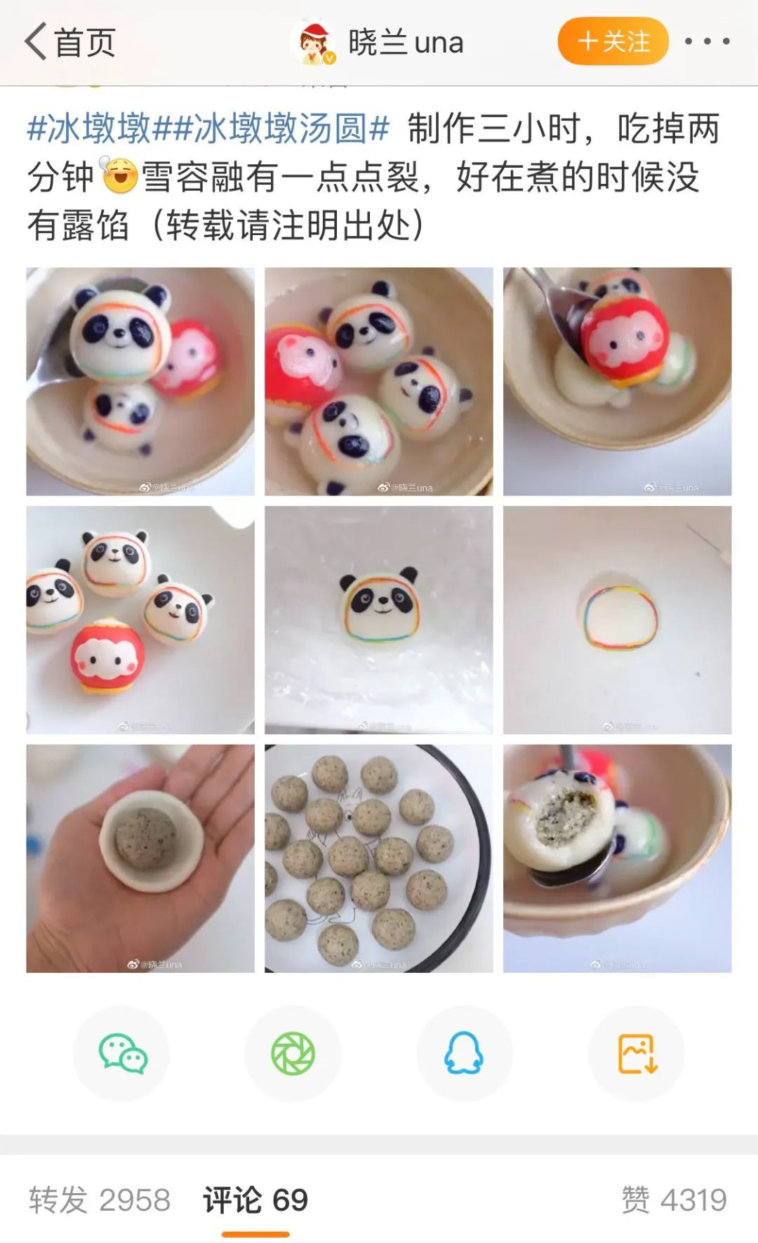 美食博主们通过自制汤圆实现能吃且好吃的“冰墩墩自由”。