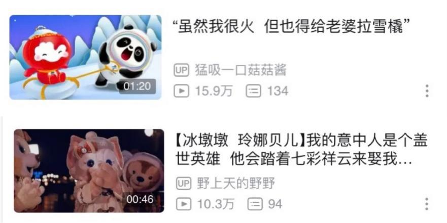 妈妈粉则操心起冰墩墩的感情大事,冰墩墩的cp(配对)被视频剪辑大手安排得明明白白,已经从和官方cp——残奥会吉祥物雪容融的甜蜜日常,快进到了和另一位吉祥物界顶流玲娜贝儿的隔次元拉郎配。