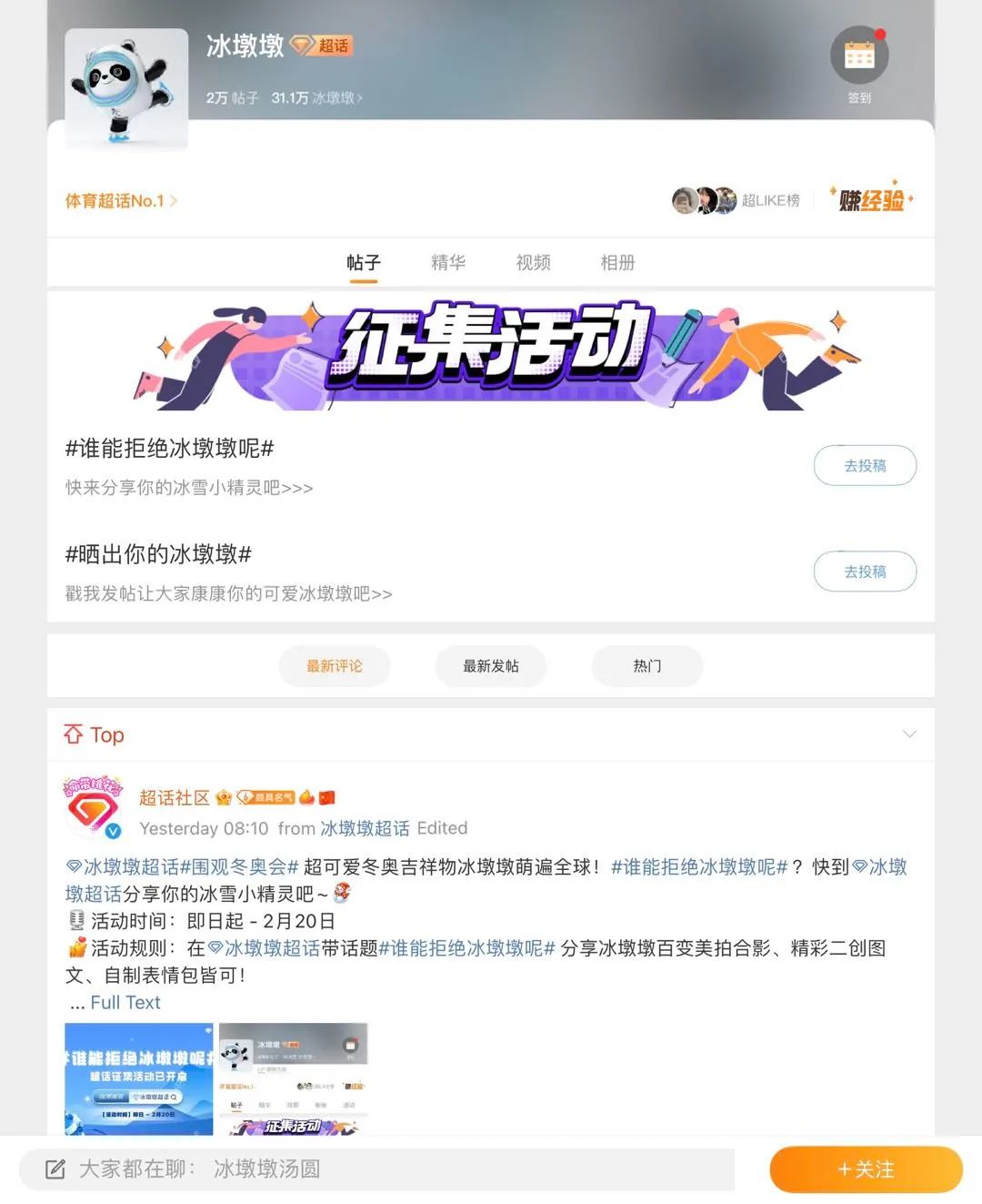冬奥开幕短短三天,冰墩墩登上了数十个热搜,更成立了微博超级话题,目前其热度甚至超越了新晋亚洲杯冠军中国女足、冬奥会热门人气选手羽生结弦、谷爱凌等,升至体育类超级话题排行榜第一名,成为当之无愧的冬奥会顶流。