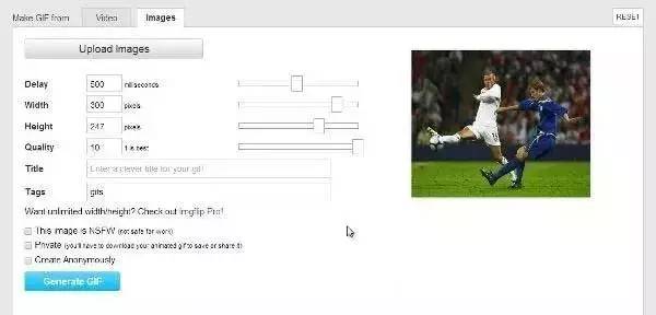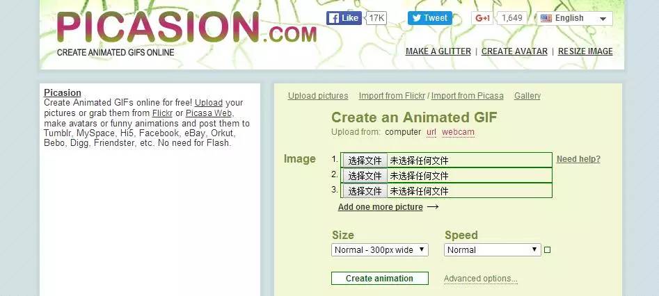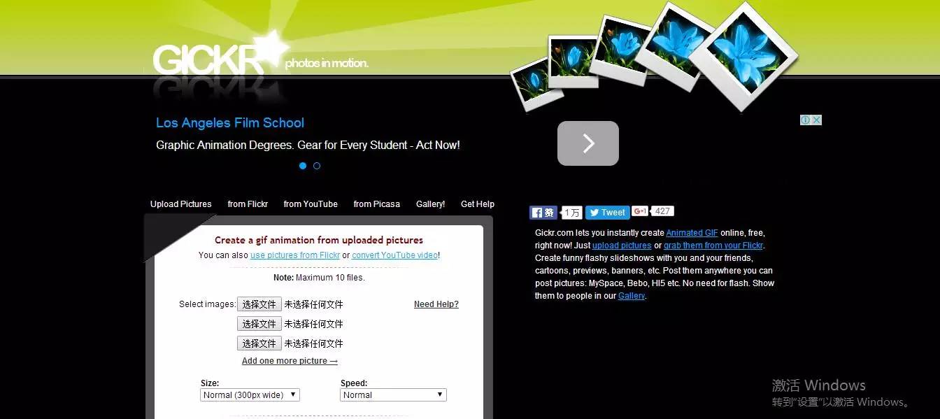 Gickr是另一个简单的Gif制造商。它支持上传图片,Flickr照片等。它可以让你选择定制的大小和速度,以及Gif动画有多个选项。