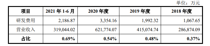 此外,跨境出口电商综合物流服务的开展高度依赖物流信息管理系统,信息技术的稳定性、先进性对于公司提升服务品质至关重要。需要注意的是,燕文物流的研发投入始终未超过营收的1%。报告期内研发费用分别占营业收入的0.37%、0.48%、0.54%和0.69%。目前公司无核心技术人员。
