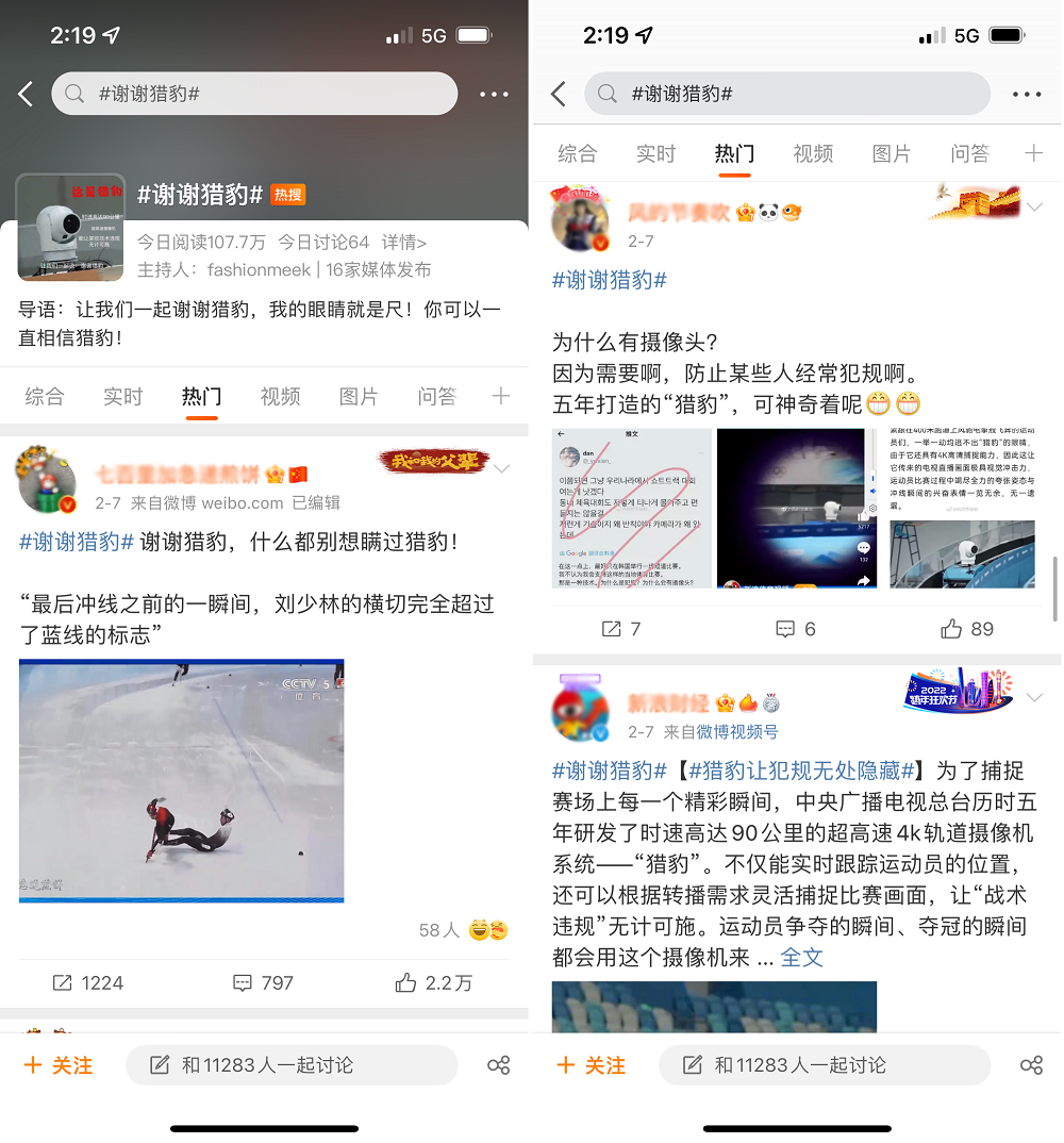 ▲网友热评冬奥比赛中的摄像机(来源:微博)