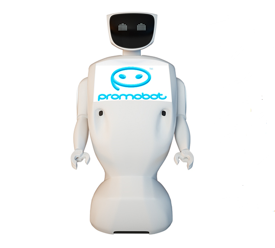 这个调皮的家伙叫做“Promobot”,是俄罗斯推出的一款帮助零售商(电影院、商业银行、购物中心)进行推销、顾客引导和提供顾问功能的机器人。