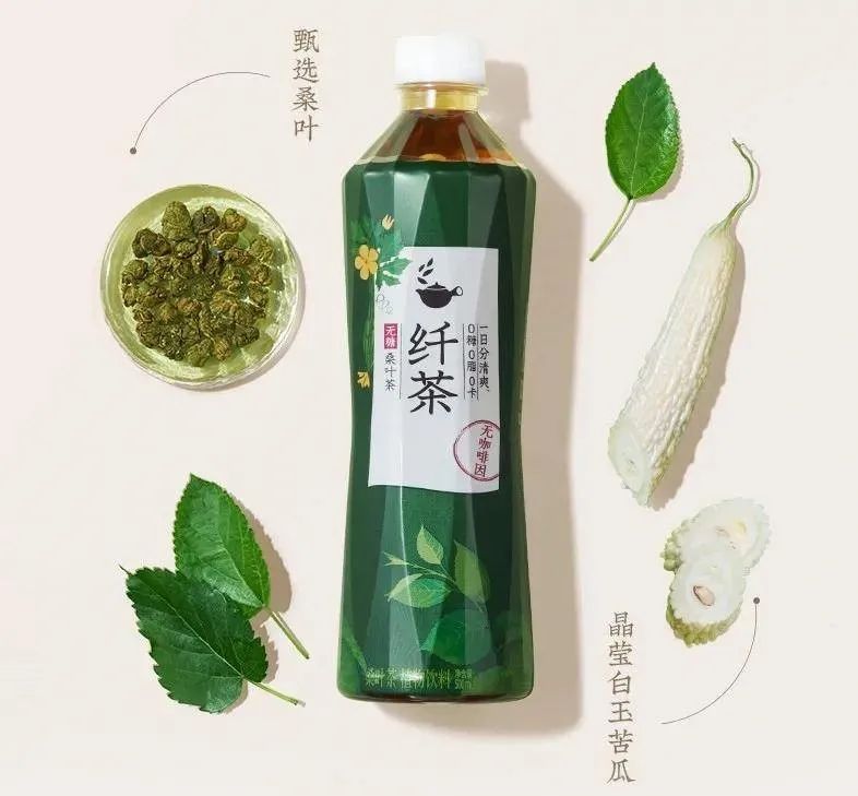 在当下各品牌以“去除蔗糖”为减糖大任时,也有品牌在研究更有效、更独特的控糖方法。比如,大量研究发现,桑叶提取物可将麦芽糖的GI值降低53%,将蔗糖的GI值降低33%,具有很好的抑糖作用。基于此原理,元气森林在去年双十一推出一款无糖桑叶茶,每瓶含7.5g桑叶,并且添加白苦瓜成分,面向有控糖减脂需求的消费者。