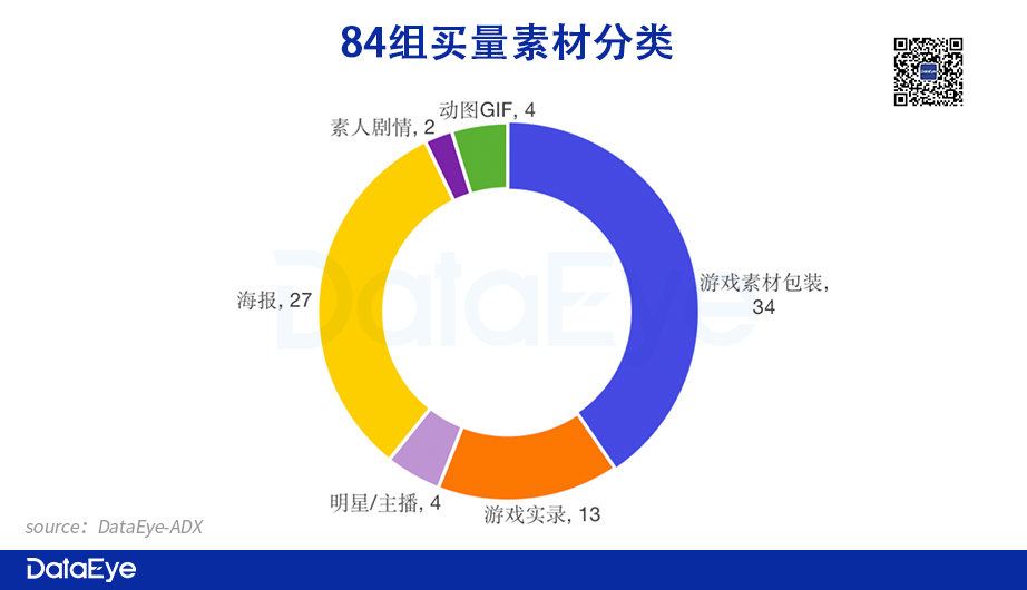 令人意外的是,图片素材仍占比较高,一是是因为资讯类平台上海报或仍有不错转化,二是因为腾讯发行的三款游戏,素材主要都是海报。