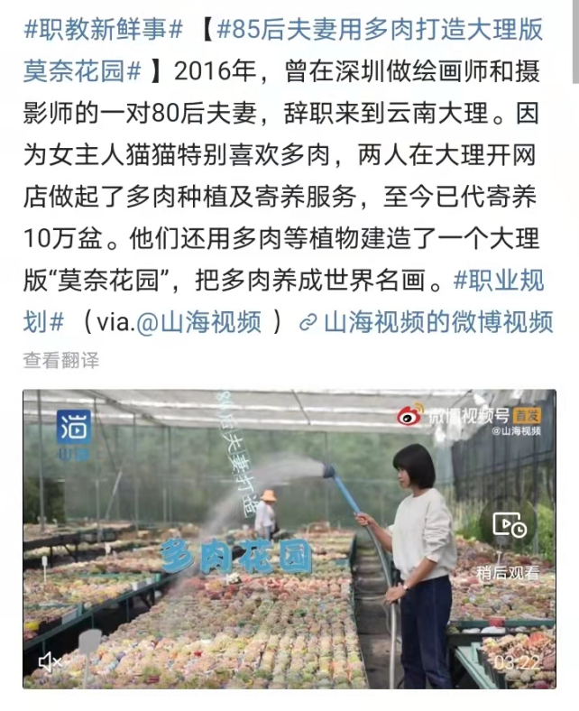 没错,这个职业就是负责帮人养多肉,然后时不时通过直播、视频照片等方式让主人看看多肉的生长情况。