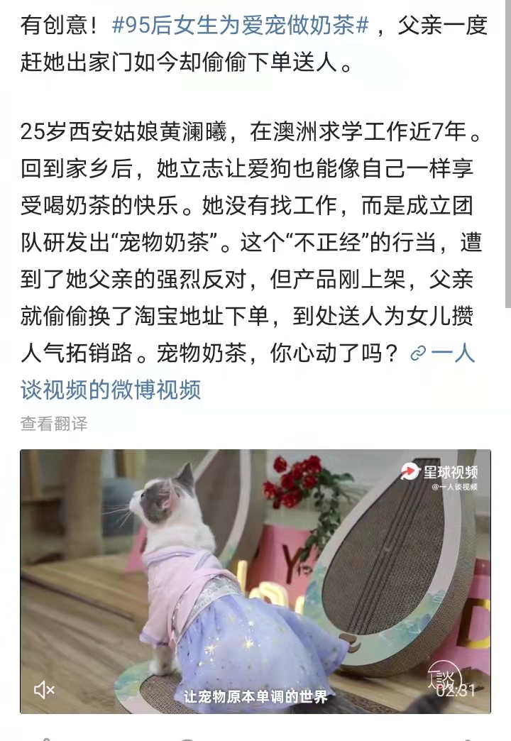 然而,只要多多搜索,便会发现,她其实是一家宠物食品淘宝店的店主,以研发制作能给猫喝的奶茶出名。猫粮品尝并非她的全部工作,而是她研发过程中很重要的一步。