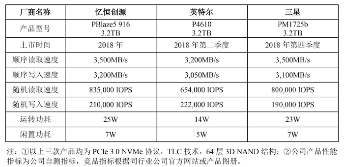 和英特尔、三星相比,忆恒创源PBlaze5 系列产品上市同步,但PBlaze6系列产品相较于三星、铠侠竞品上市较晚。目前,忆恒创源的PBlaze6 系列产品目前尚未实现规模化销售,公司对应PBlaze6部分产品还未取得专利或其他保护措施。