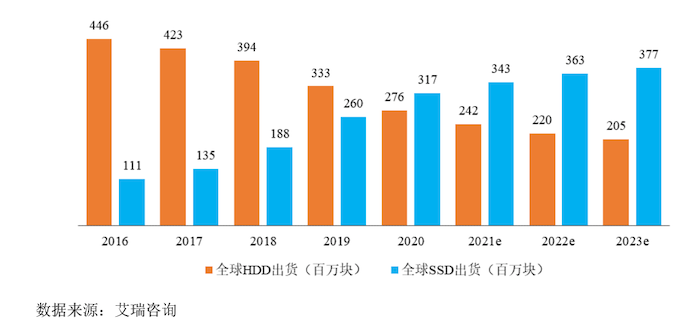 据艾瑞咨询数据,2016年至2020年全球SSD出货量的年复合增长率为23.35%,但预计该增长并未持续,2020年至2023年的四年的年复合增长率只有4.43%。另根据Gartner数据,中国企业级SSD在市场增速上也呈现下滑趋势。