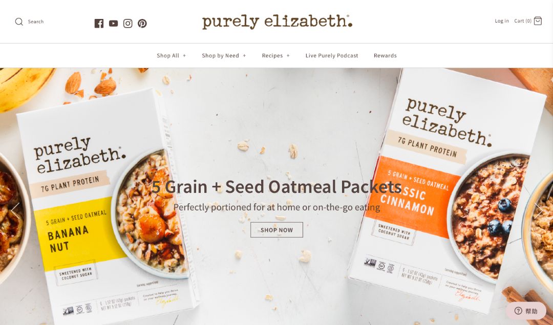 Purely Elizabeth由Elizabeth Stein在12年前创立,目前已推出煎饼、华夫饼混合物和燕麦片多款产品,均使用非转基因原材料,例椰子砂糖、益生菌、MCT油等。