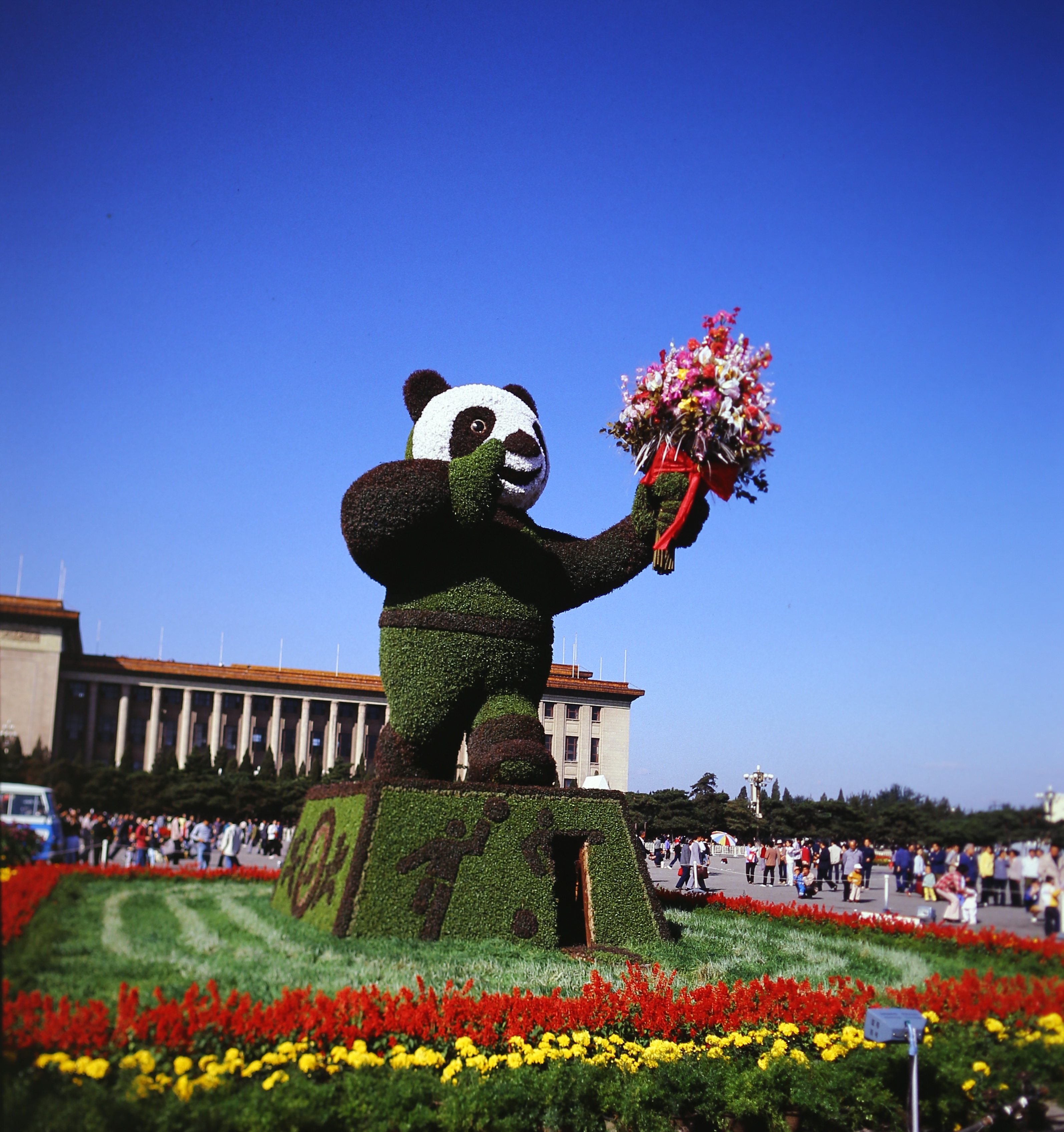 在中国,三次引发举国热情的体育赛事的吉祥物都有熊猫形象。1990年亚运会的熊猫“盼盼”形象是官方指定的。1985年5月30日,第11届亚组委宣布,熊猫形象成为1990年亚运会的吉祥物。在“新京报”的报道《“盼盼”设计者刘忠仁:舍火炬举金牌是一种创新》中,刘忠仁回忆道,当时不同的设计者提交了很多不一样的熊猫形象,有剪纸有版画,他提交的是一个卡通形象。一开始他设计的是熊猫举火炬的形象,后来由运动员手举金牌的模样找到灵感,决定将熊猫“盼盼”呈现为手举金牌姿态。