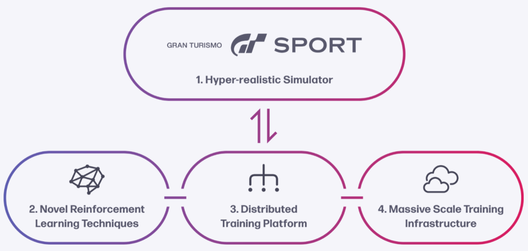 GT Sophy研究项目启动于2020年4月,是一个使用新型深度强化学习平台进行训练的自主AI智能体,也是Sony AI自2019年11月成立以来一直致力于应对的关键挑战之一。Sony AI以日本、美国和欧洲三地为据点,重点推进游戏、成像、传感三个AI旗舰项目。Sony AI全球负责人北野弘明还曾放言:“到2050年,要让 AI 凭自己的科研成果拿下诺贝尔奖!”而今日登上Nature封面的赛车游戏AI,正是Sony AI韬光养晦、筹谋已久的大招!过去两年间,Sony AI团队、《GT赛车》系列背后的游戏开发工作室Polyphony Digital(PDI)以及索尼互动娱乐(SIE)的云游戏团队密切合作,使用SIE管理的云游戏基础设施训练这个AI。