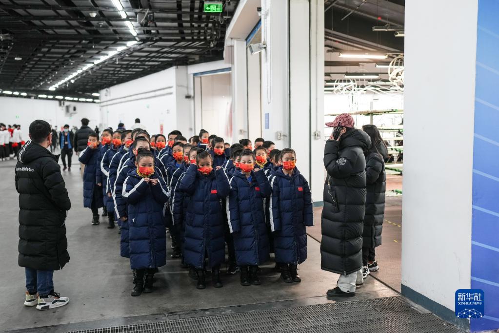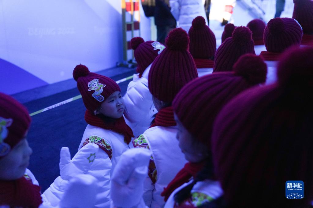 彩排前,在国家体育场(鸟巢)后台,马兰花儿童合唱团的孩子们在候场(1月12日摄)。