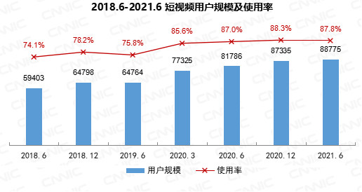 诚然,在长视频平台还未解决亏损问题之前,短视频平台的兴起确实让整个行业出现了新的变化。根据CNNIC发布的第48次《中国互联网络发展状况统计报告》中的数据,截至2021年6月,我国短视频用户规模达到8.88亿,继续保持增长态势。大规模的消费群体涌入短视频,用户看视频的习惯随之被重塑。
