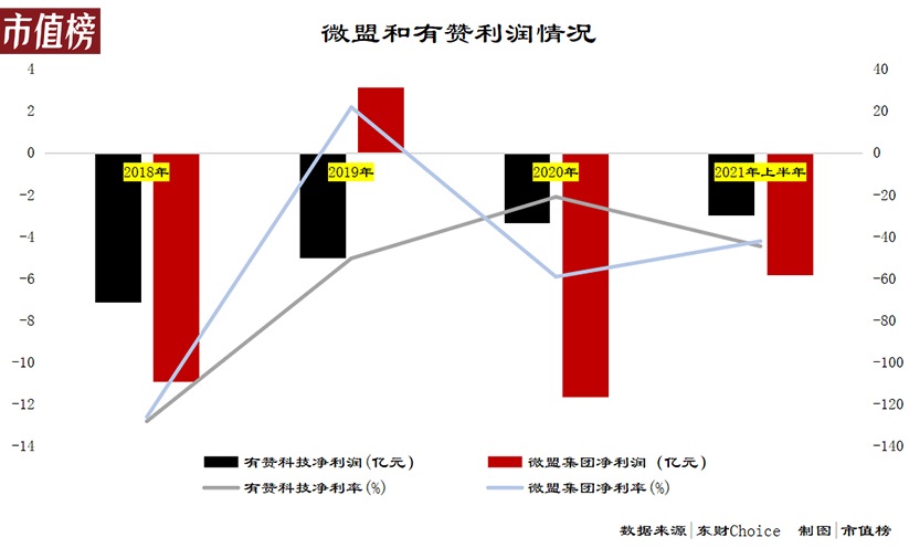 有赞科技的招股书所载的期间里,从未实现盈利,2021年之前处于减亏中,2021年上半年亏损扩大,为2.99亿元,在此前文章《关键指标下行,有赞的故事不好讲了》中,市值榜指出有赞距离盈利还有很远的距离。