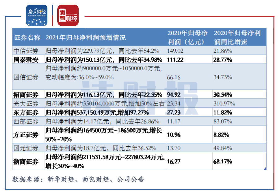 包括沪深两市上市券商及新三板挂牌券商在内,目前已经有24家券商发布2021年业绩预告或快报。