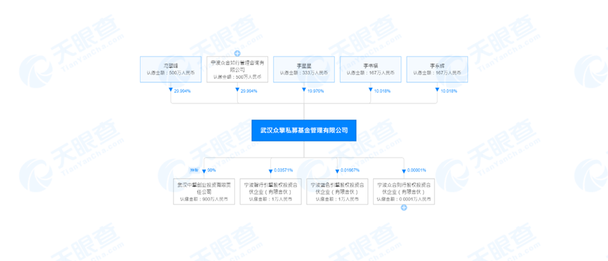 天眼查显示,2022年1月24日,武汉众擎私募基金管理有限公司(以下简称“众擎基金”)发生工商变更,新增股东包含吉利汽车创始人李书福、李书福之子李星星、吉利控股集团CEO李东辉,截止目前,三者分别持股10.018%、19.976%、10.018%。