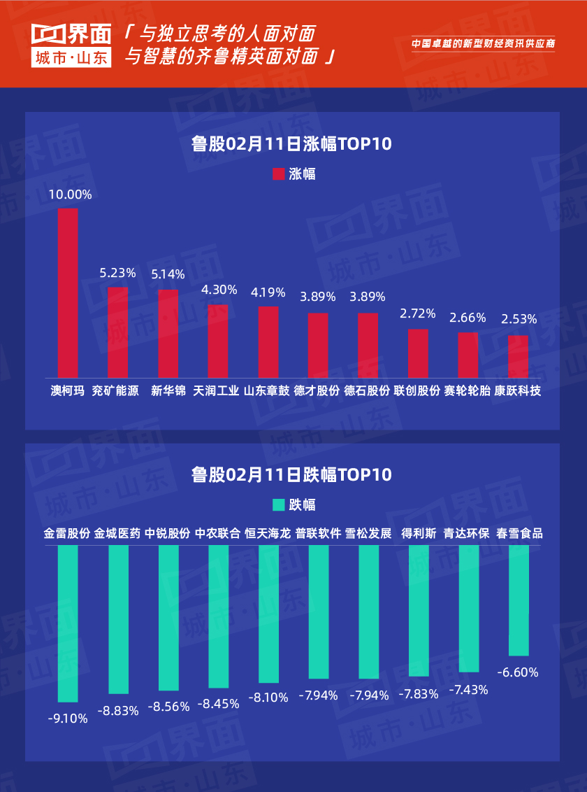 2月10日,山东27股上涨,233股下跌。