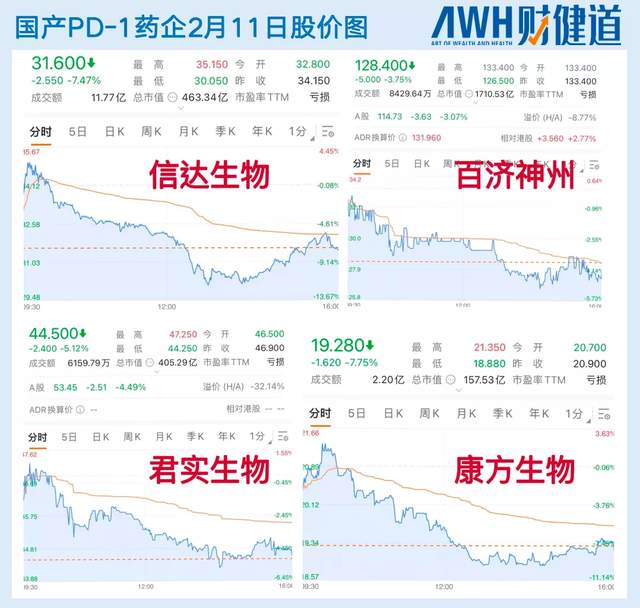 资本市场“闻风而跌”,信达生物(01801.HK)11日收跌7.47%,其他PD-1出海企业股价同步跟跌3%以上。而受出海问题烦扰已久的信达生物,自去年11月底至今,股价已从每股73.5元降至30.55元,跌幅达58.4%,市值蒸发超600亿。