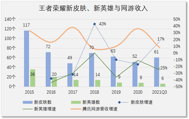 新英雄赚的是玩法创新的钱,而皮肤本质上是笔心智买卖,只有持续创新才能同时满足好玩与好看。显然,玩法创新可遇而不可求,而获取心智相对而言难度会小很多。
