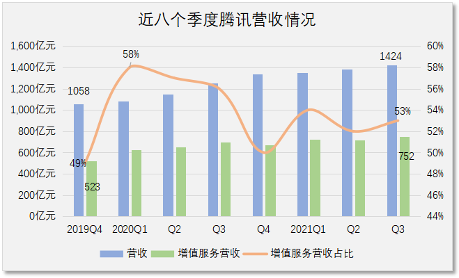 增值服务中,游戏收入占据绝对大头,而游戏中以皮肤为主的网络游戏收入占支配地位。
