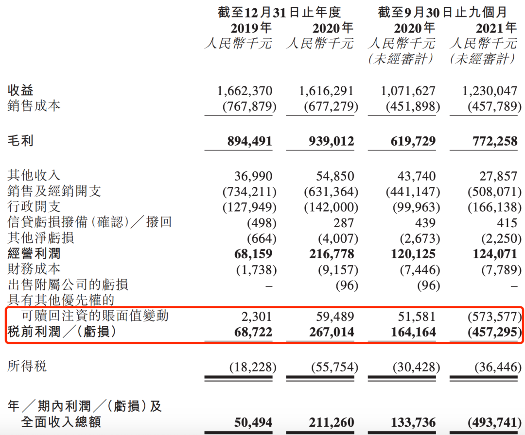 值得注意的是,舒客在2019年到2020年保持正向盈利,净利润分别为5049.4万和2.11亿。但截至2021年前三季度,公司却亏损4.94亿,不过这并不是真正的经营亏损,只是当期计入了5.74亿元可赎回注资的账面值变动。抛开这一影响,舒客2019年、2020年以及2021年前三季度的经调整净利润分别为4819.3万元、1.52亿元和1.29亿元。