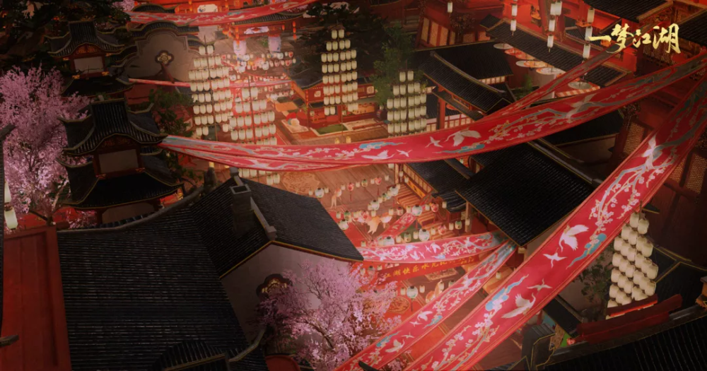 《一梦江湖》春节庙会主场景参考了非物质文化遗产——鳌山灯