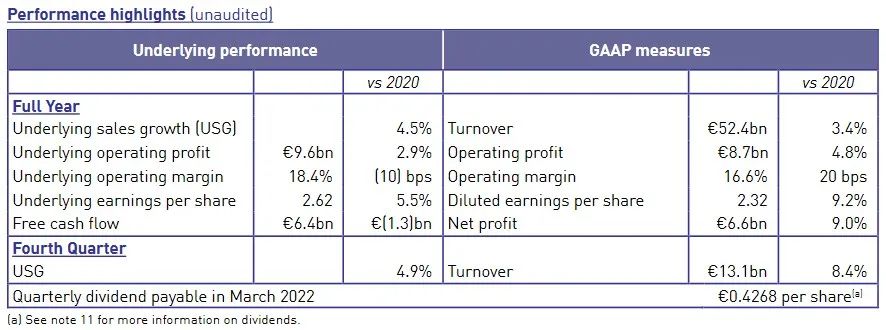 2月10日,联合利华(UL.US)公布了2021年第四季度及全年财务业绩。财报显示,该公司Q4营收为131亿欧元,同比增长8.4%。