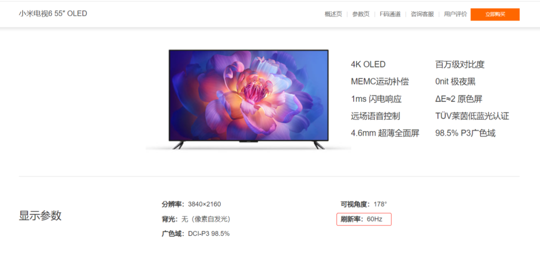 5000元的小米OLED电视 刷新率仅60Hz 图/小米官网