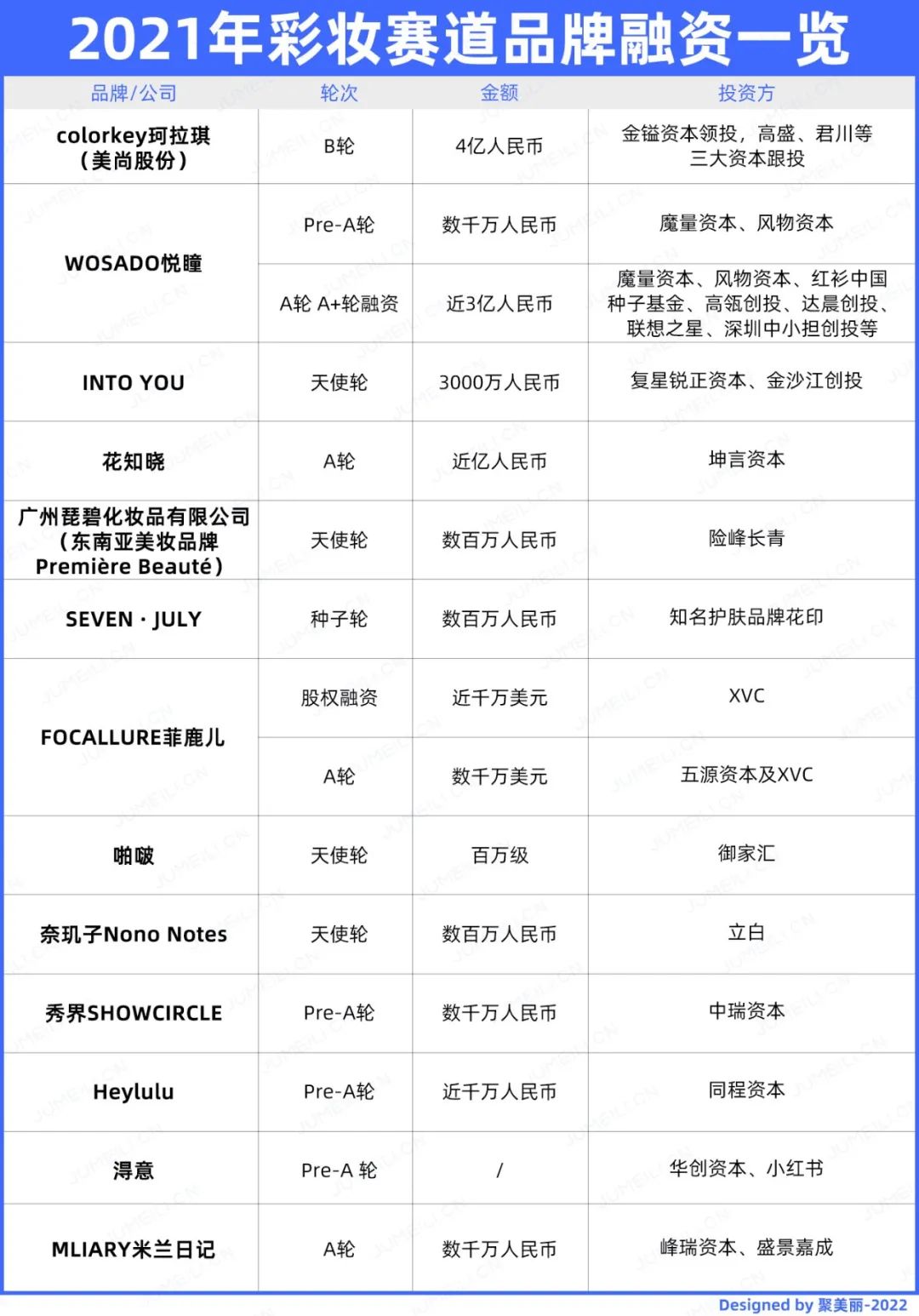 聚美丽对全年的融资交易进行了梳理,以下为具体维度的一些分析。同时,我们也与部分新锐品牌创始人、投资人对部分热门赛道、行业“唱衰新锐”等现状进行了一番探讨。