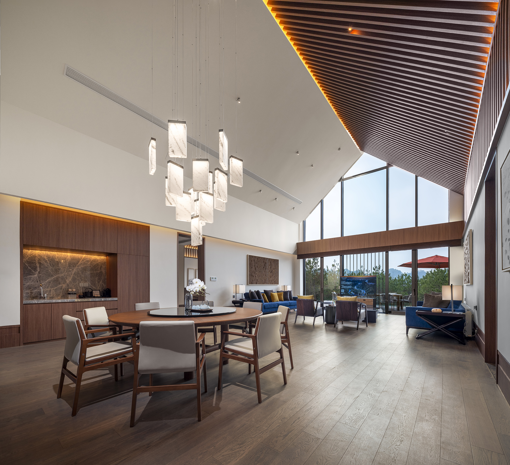 知茶山房有4间独立茶室,分别以春夏秋冬命名,每间茶室可容纳6-8位茶客。茶室内精选数十种中、西式茶,还有当地的大佛龙井。在知茶山房的山顶茶室可一览众山小,将茶文化与视觉艺术相结合,带来多重感官享受。此外,悦心阁还提供精致中西饮品和小点,毗邻室外无边泳池的泳池吧提供各式鸡尾酒特调和下午茶。