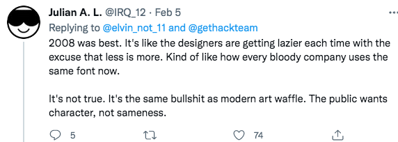 甚至有网友尖锐吐槽:“管这种将Logo每隔几年稍微简化一点的设计叫进步是什么鬼?如果你去掉偏见看看过去上一版本的Logo,就会发现新的更差劲了,同时缺乏特点。请重新考虑这次更新!”