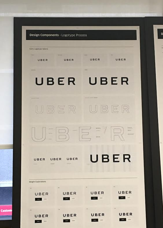 在当时和Uber更换Logo的主设计师Shalin Amin沟通的过程中,他在Uber总部向硅星人展示了整个设计思路和过程。据他表示,这个新Logo是55人组成的设计团队历时8个月设计出来的成果。 同时,他也向硅星人独家展示了整个设计过程中被否掉的Logo(你能看出第一排四个有什么区别吗?)