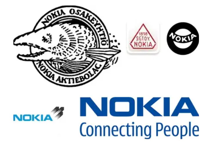 诺基亚早期的Logo更是相当拟物化,后来逐渐转化成一个简单的字母Logo。