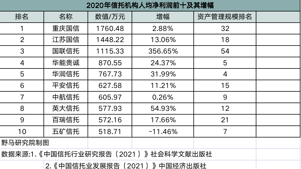 人均净利润,是展现信托机构管理效率和“人效比”的重要数据。往往被市场看作,信托机构“吸金”能力的一项衡量标准。