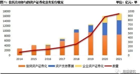 2016年,信托公司参与的资产证券化产品规模合计5300亿元,2021年(截至12月16日),这一数字达到1.7万亿元,5年时间,增长超三倍。