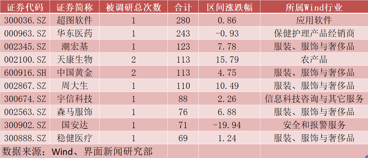 行业数据显示,本周最为热门的调研板块为服装、服饰与奢侈品,该板块共有6家上市公司获得机构调研;其次是信息科技咨询与其他服务板块,共有4家上市公司获机构调研;建筑与工程板块紧随其后,有3家上市公司获机构调研。