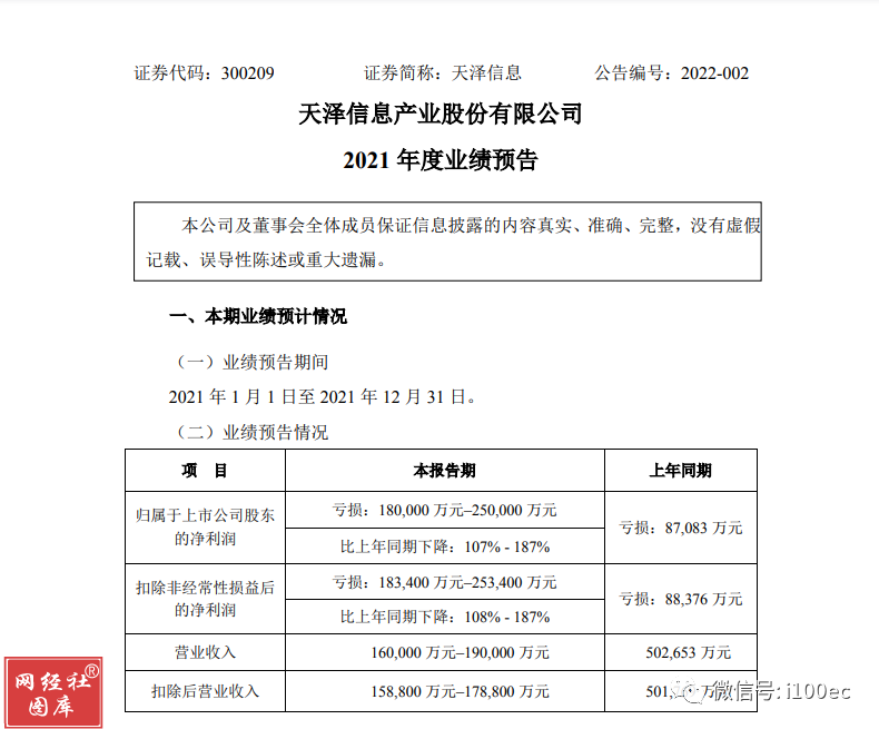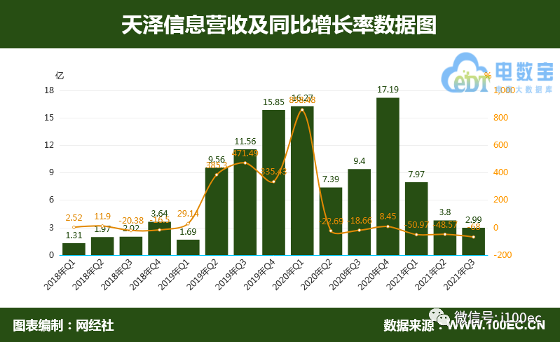 营业收入方面,下降幅度也不低,天泽信息预计2021年营收16亿元-19亿元,上年同期50.27亿元;扣除后营收15.9亿元-17.9亿元,上年同期50.18亿元。