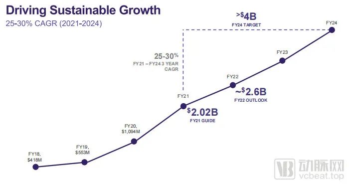 最后,Teladoc还将其2021年的营收目标提高到20.15亿至20.25亿美元之间,由此推算2021年的年增长率为85%,超过此前市场预期。在投资者日期间,管理层还对未来3年的业绩进行展望——预计2024财年的收入将超过40亿美元,这意味着在未来3年,年收入复合增长率将达到25%~30%,将在3年内将其2021财年收入规模扩大一倍。